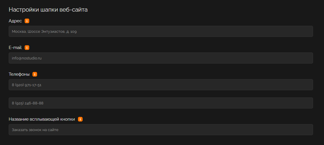 - Электронная почта — указывается e‑mail для приёма сообщений с сайта.